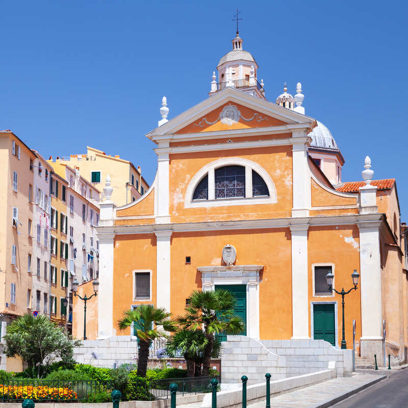 Ajaccio Cathedral has this warm ocher-colored exterior that kind of glows in the sun, and once you step inside, the Baroque interior really leans into that ornate, Italian-church feel. Think gilded details, dramatic flourishes, the whole thing.