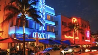 A sunny view of Hollywood Boulevard with palm trees
