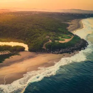 Aerial-view-of-Puerto-Escondido-jungle-and-coastline