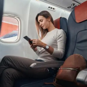 female-plane-passenger-on-phone